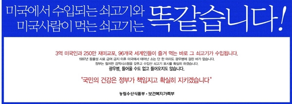 특히 "미국에서 수입되는 쇠고기와 미국 사람이 먹는 쇠고기는 똑같다", "광우병, 들어올 수도 없고 들어오지도 않는다" 등 미국산 쇠고기의 안정성을 홍보하는 데에만 18억9557만 원을 쓴 것으로 확인됐다고 김 의원은 전했다.