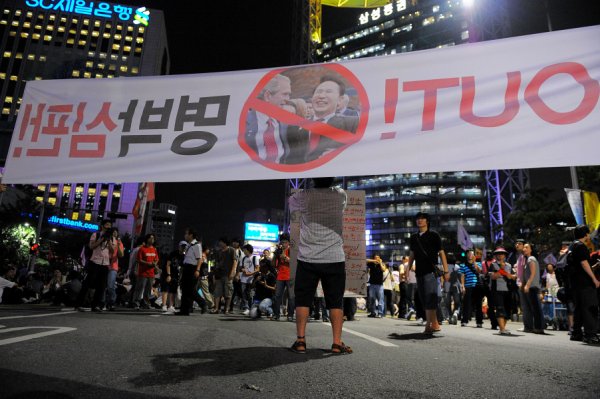 인도에서 온 한 참가자는 "아까 보수단체 집회도 갔었는데, 여기에는 더 다양하고 젊은 사람들이 모여있다. 이게 젊은 사람들의 생각 아니겠는가. 한국 정부는 이제 완전히 미국에 두 팔 벌려 환영하며 개방했다. 오늘 시위는 하나의 상징이지만, 그 뒤에 비정규직, 물가 등 수많은 사실이 존재한다"고 지적했다.