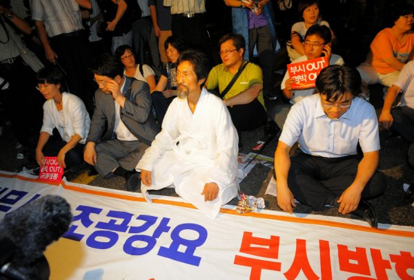 전모(53) 씨는 부시 대통령에게 "일단 (미국산 쇠고기) 재협상을 해야 한다"며 "말로만 사과하거나 빙빙 돌릴 일이 아니다"고 못박았다. 그는 "사실 문제는 우리 정부가 더 심각하다"며 "재협상을 하면 끝날 걸 미국 눈치를 보면서 시간을 끌고 있고, 이러다가 진짜 반미도 나온다"고 경고했다.