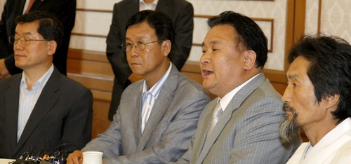 이들은 이어 김형오 국회의장을 만나 이번 사태에 대한 입장 표명을 종용했다. 그러나 김 의장은 "다시 파악해보겠다", "15일까지 원구성 하자" 등 에두르거나 동떨어진 답변으로 피해갔다. 김 의장은 국정조사 특위 최병국 위원장으로부터 보고를 듣고서야 뒤늦게 "한 총리가 출석해야 한다"고 한 마디 했다.