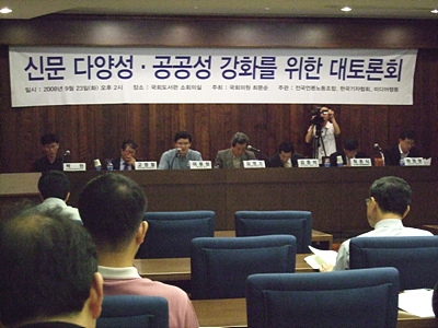 민주당 최문순 의원실 주최로 23일 오후 국회도서관에서 열린 '신문 공공성·다양성 강화를 위한 대토론회'에 참석한 지역 언론 관계자들은 이명박 정부의 미디어 정책에 대한 위기감은 물론, '지방 홀대'에 대해 강한 불만을 나타냈다.