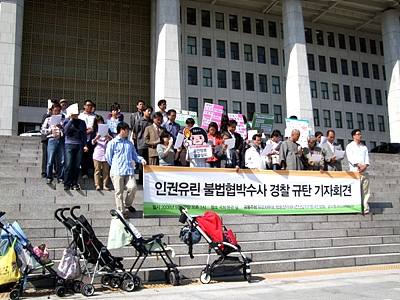 이 의원은 이어 "과연 그들의 직업이 뭔지, 또 배우자들의 직업이 뭔지도 조사해야 왜 어린 아이들을 위험한 시위 현장에까지 데려왔는지에 대한 진의를 알 수 있을 것"이라고 경찰의 '유모차 수사' 정당성을 주장했다.