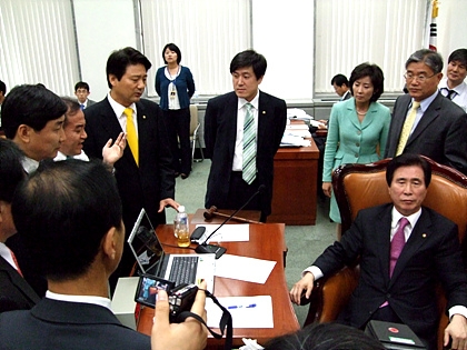 오후 2시 30분이 넘어서 고 위원장과 한나라당, 민주당을 제외한 야당 의원들이 국감장에 착석해 한국관광공사에 대한 질의를 개시하려 했으나, 전병헌 의원은 "방금 중재안을 제시해놓고 우리 당 소속 의원들과 협의를 하기도 전에 국감을 진행시키면 어떻게 하느냐"며 거세게 항의했다.