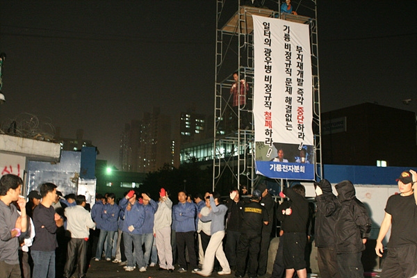 기륭전자 노동자들이 올해 들어 3번째 고공농성에 들어 간 20일 밤, 서울 금천구 가산동 기륭전자 앞에서 쏟아져 나온 말들이었다. 이 발언의 주인공은? 다름 아닌 회사 경영진, 김영창 기획이사였다.