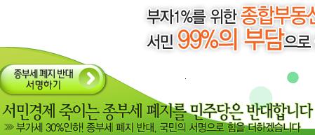 | ▲ 민주당 홈페이지 메인 화면을 차지하고 있는 '종부세 폐지 반대 서명운동' 10일에도 2명이 서명을 했다. ⓒ프레시안 |