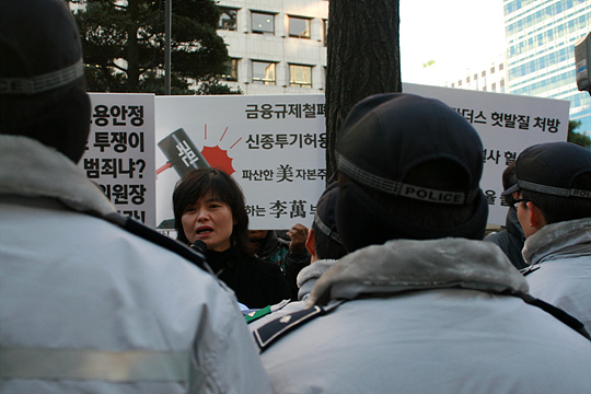 민주노총과 경찰의 대립은 이 위원장 검거 이후에도 날로 격화되는 분위기다. 이날도 서울지방경찰청 정문 앞에서 기자 회견을 하려는 민주노총과 "여기서는 못 한다"는 경찰이 대립해 소란이 발생했다.