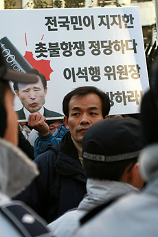 '촛불 총파업'을 주도한 혐의로 지난 8일 구속된 이석행 민주노총 위원장이 11일 "무기한 단식"을 선언했다. 이석행 위원장은 당초 체포된 이튿날인 6일부터 12일까지만 옥중 단식 농성을 할 계획이었다.