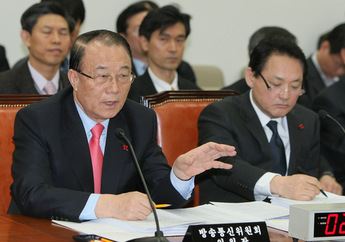 | ▲ 최시중 방송통신위원장이 8일 국회에서 열린 국회 문방위 전체회의 대체토론에서 지난해 말 방송문화진흥회 20주년 기념식사 관련 서갑원 민주당 의원 질의에 답하고 있다. ⓒ연합뉴스 |
