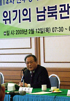 민주당 소속 민주정책연구원이 12일 오전 주최한 초청강연에서 정 전 장관은 "북측에서는 김정일 위원장의 권위와 위상이 걸린 문제라고 생각하고 있다"면서 "남측에서 통일부 장관이 아무리 뭐라고 해도 진정성을 의심하기 때문에 남북대화를 원한다면 이명박 대통령이 결자해지 차원에서 나서서 6.15, 10.4선언의 이행의지를 진정성 있게 직접 알려야 한다"고 말했다.
