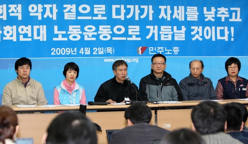 | ▲ 다시 시작하는 민주노총의 새 지도부의 계획 가운데 가장 눈에 띄는 것은 "사회연대노총으로 거듭나겠다"는 다짐이다. 임성규 위원장은 2일 "조직된 조합원을 뛰어 넘어 학생과 학부모, 시민사회, 농민, 저소득 자영업자, 빈민, 실업자까지 포괄하는 사회연대체로 발전해 가겠다"고 밝혔다. ⓒ연합뉴스 |