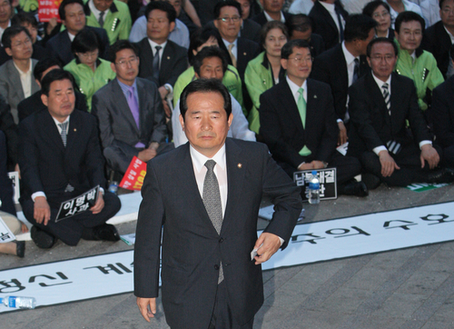 | ▲ 6.10 범국민대회 시국연설을 향해 연단을 향하는 정세균 대표. ⓒ연합뉴스 |