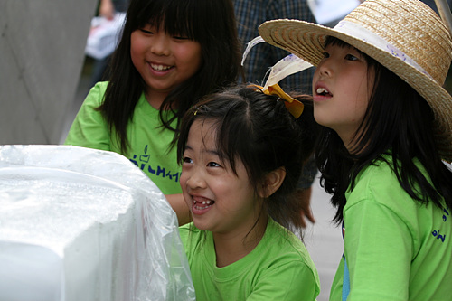 ▲ "정리 해고가 뭐냐고 묻는 딸 아이에게 어떻게 설명해야 할지 몰라 눈물만 흘렸습니다." 쌍용차 가족대책위의 권자영 씨가 무대 위에서 호소하는 동안에도 아이들은 그저 신나게 뛰어 놀았다. ⓒ프레시안