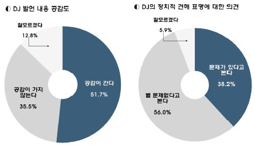 이와 같은 흐름은 민주당 자체 여론조사에서도 거의 동일하게 나타났다. 민주정책연구원이 실시한 여론조사에 따르면 김 전 대통령에 대해 '적절한 발언'이라는 응답이 51.7%였고, '부적절한 발언'이라는 응답은 38.1%로 나타났다.