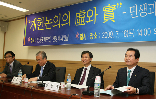 김형오 국회의장이 "개헌 논의를 본격 제기하겠다"고 공언한 제헌절을 하루 앞둔 16일, 민주당 천정배 의원과 '민생정치모임'이 마련한 '개헌논의의 허와 실' 토론회에서 김종인 박사는 "개헌을 얘기하는 사람들은 권력구조를 고치면 만사형통이라고 착각하고 있다"고 꼬집으며 이처럼 일갈했다.