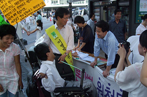 정동영 의원도 특별한 일정이 없으면 서명운동 자리에 나와 처음부터 끝까지 자리를 지키고 있다. 익히 얼굴을 널리 알린지라 정 의원과 사진을 찍자는 행인들도 많다. 또한 민주당은 이 곳에서 서명운동본부를 발족할 계획이다.