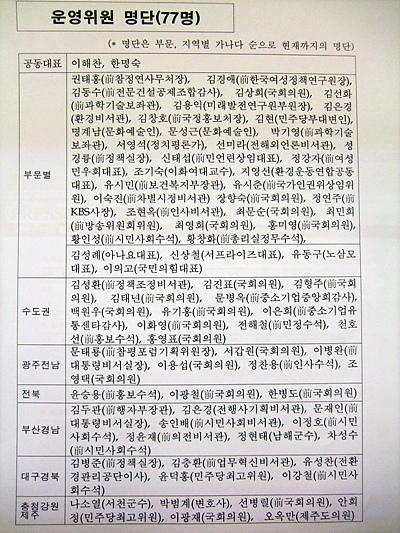 | ▲ 시민주권모임(가칭) 운영위원 명단. ⓒ프레시안 |