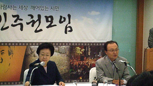 | ▲ 2일 오전 '시민주권모임'(가칭) 창립 취지와 활동 계획에 대해 설명하고 있는 한명숙, 이해찬 전 총리. ⓒ프레시안 |