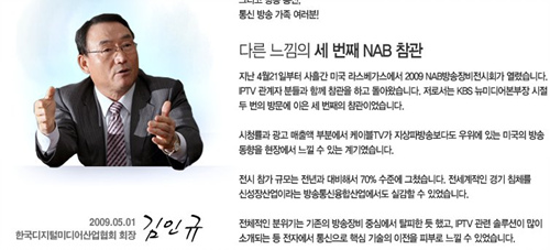 | ▲ 코디마 홈페이지의 김인규 회장 인사말. |