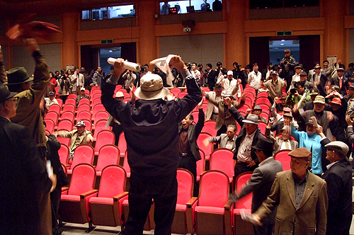 사회자는 이를 무시하고 행사를 진행하려 했으나 좌석을 차지하고 있던 50여 명의 노인들이 일제히 일어나 거세게 항의를 하면서 장내는 아수라장이 됐다. 항의가 점점 격해지면서 노인들은 단상 위에 올라가 고성을 지르며 태극기를 흔드는가 하면 맨 앞줄에 앉아 있던 백낙청 교수는 물론 민주당 정세균, 창조한국당 문국현, 진보신당 노회찬 대표 등 내빈들에게 욕설을 퍼붓기 시작했다.