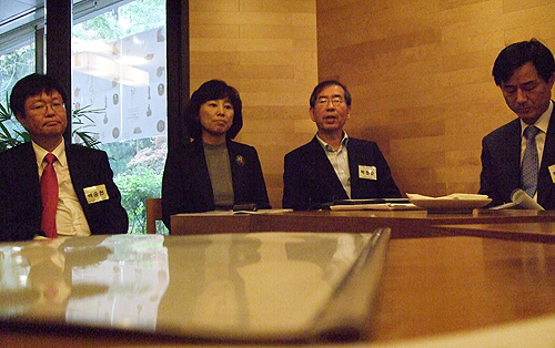 | 박원순 "충고 안 받으면 중대한 결심" 박원순 희망제작소 상임이사는 이날 창립식 강연을 통해 이명박 대통령에게 정부의 정책기조 변화를 촉구하는 '시무 7책'을 지적하며 '국민통합·미래발전 원탁회의' 소집을 제안할 예정이었다. 박 이사는 기자간담회에서 "부득이하게 제안은 강연문으로 대체하게 됐다"며 "정부가 추진하는 사회통합위원회도 시민사회의 참여가 없으면 반쪽일 수밖에 없다. 정부가 겸허하게 제한을 받아들이면 위원회에 참여할 수 있다"고 밝혔다. 박 이사는 그러나 "반대라기보다는 건강한 대안을 담은 충정어린 충고가 받아들여지지 않을 경우 정말 중요한 결심을 할 수밖에 없다"고 강조했다. 다만 '중대한 결심'에 대해서는 언급하지 않았다. 다음은 박 이사의 강연문 전문이다.