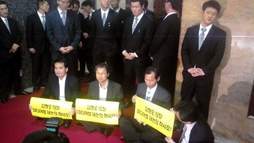 그러나 이날 오전 9시경 '의장의 헝가리 대통령 영접'을 이유로 국회 경위 40여 명에 의해 강제로 끌려나왔다. 이들은 의장으로부터 확실한 대답을 들을 때까지 계속 찾아간다는 방침이어서 이와 같은 실랑이가 상당 기간 이어질 전망이다.