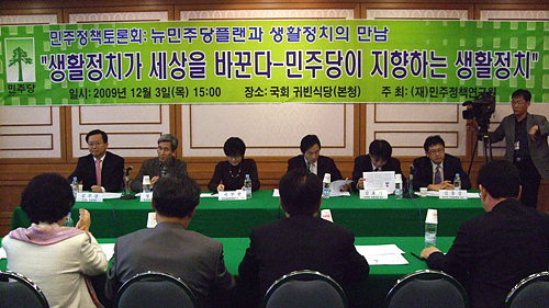 당 싱크탱크인 민주정책연구원은 3일 오후 국회 귀빈식당에서 김호기 연세대 교수(사회학)와 박주현 시민경제사회연구소 소장(전 청와대 시민사회수석)을 발제자로 내세워 뉴민주당에 관한 토론회를 열었다. 화두는 '생활정치'였다.